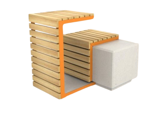 Assise en Robinier avec structure en acier peint RAL9006, RAL7016 ou RAL1028